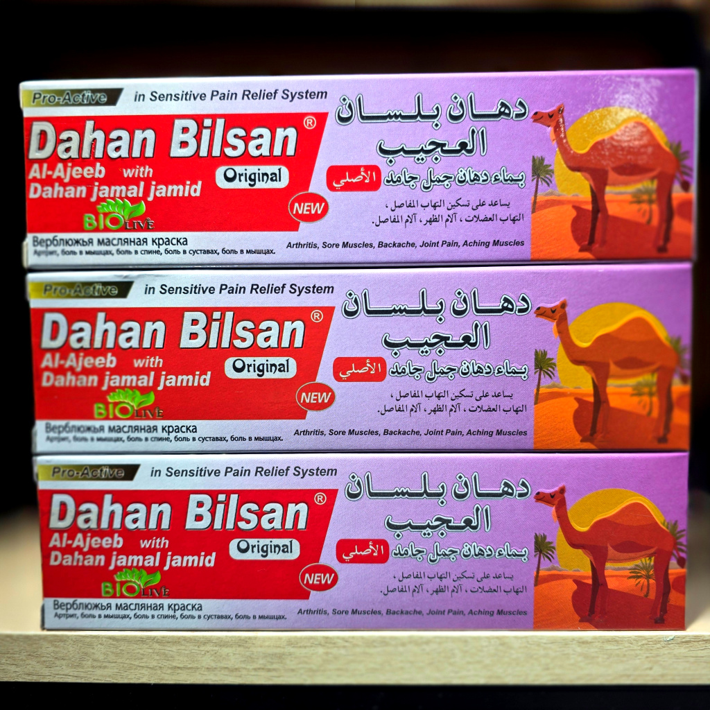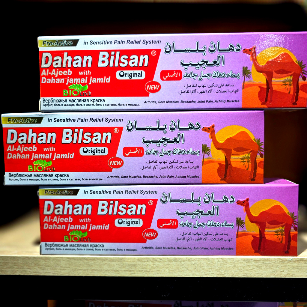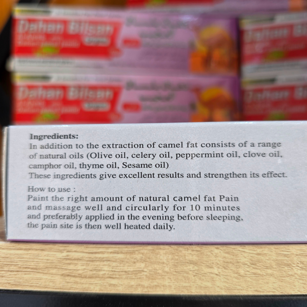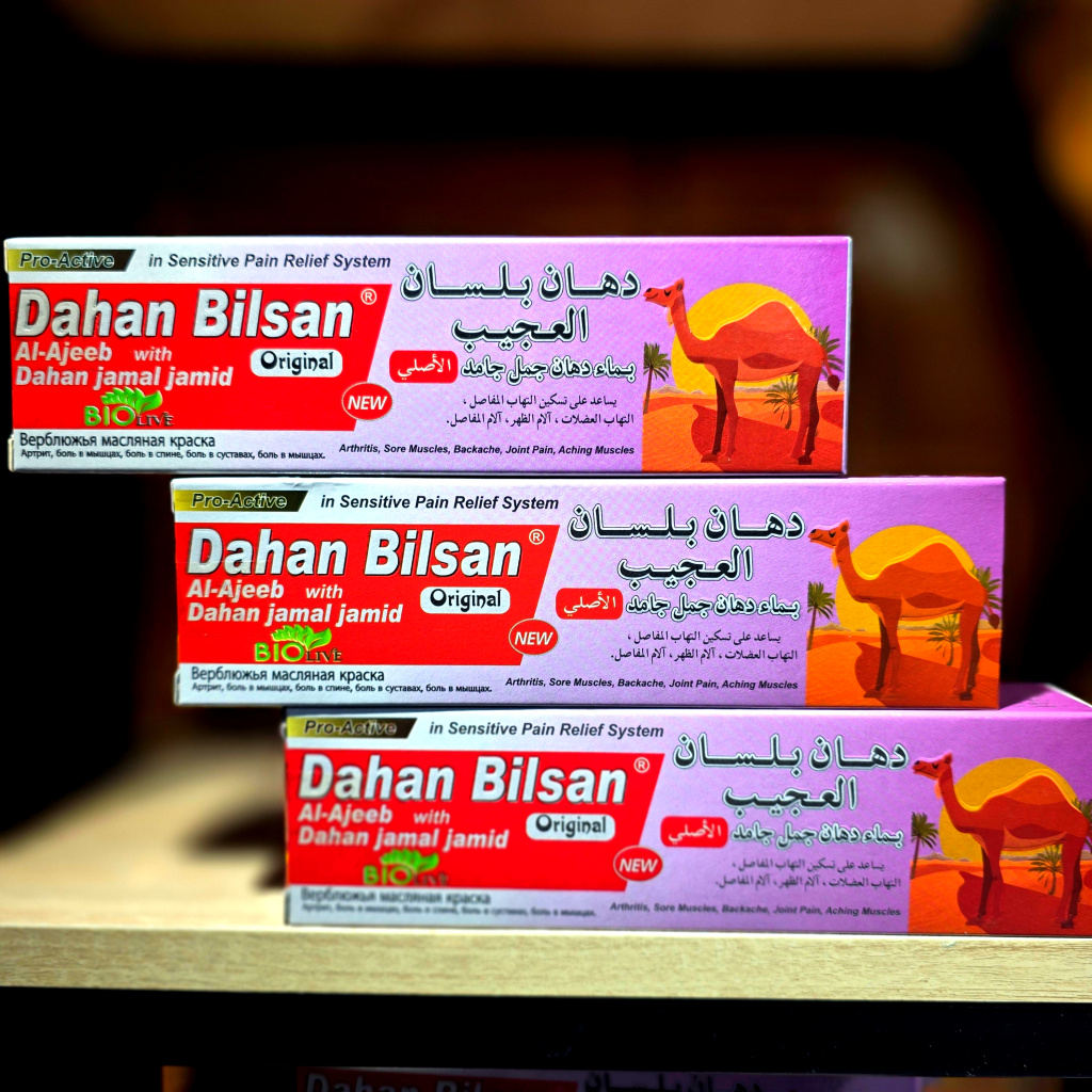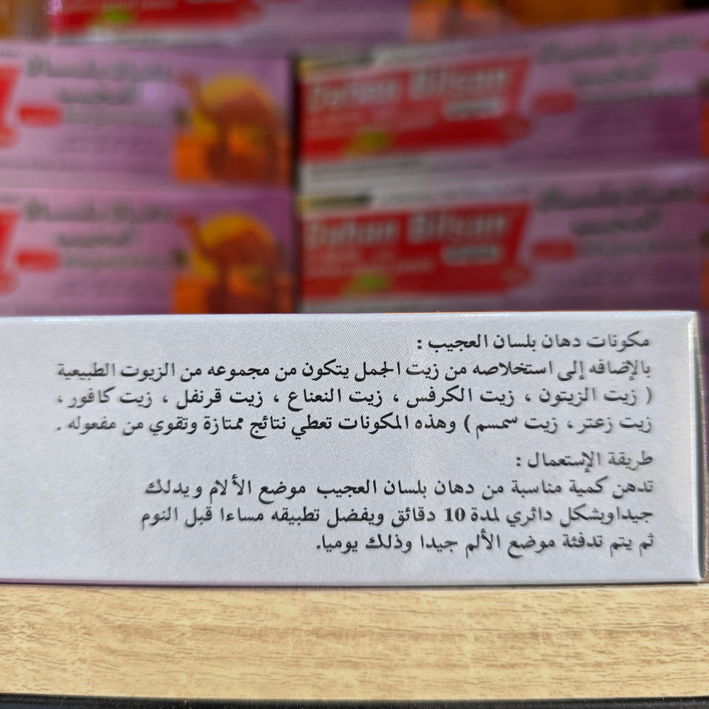 اكتشفي قوة التركيبة الطبيعية في دهان بلسان العجيب، المنتج الذي يجمع بين خلاصة زيت الجمل ومجموعة من الزيوت الفعّالة مثل زيت الزيتون، زيت الكرفس، زيت النعناع، زيت القرفة، وزيت الكافور.