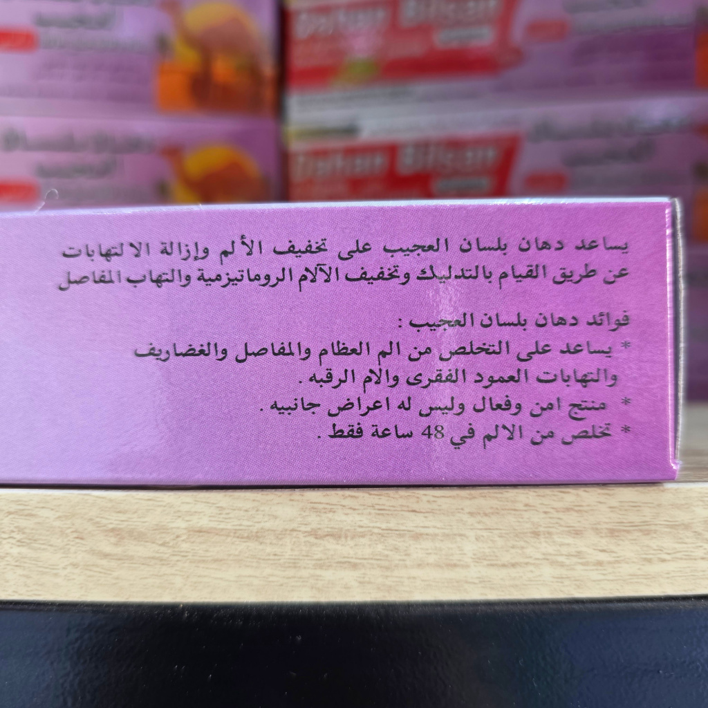 يمتاز دهان بلسان العجيب بأنه سريع الامتصاص، يمنح شعوراً بالراحة الدافئة، ويُستخدم لتدليك أماكن الألم بشكل يومي للحصول على نتائج ملموسة خلال وقت قصير.