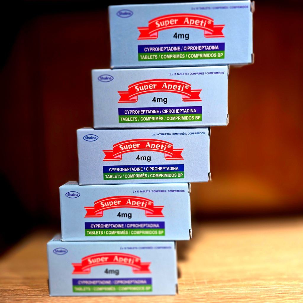 تعدُّ حبوب سوبر ابيتي للتسمين Super Apeti من أشهرِ أدويةِ زيادةِ الوزنِ، حيث يعملُ من خلالِ فتحِ الشّهيّةِ بالتالي زيادةُ الوزنِ بفعاليّةٍ ملحوظة. وهو من إنتاجِ شركة Shalina الإفريقيّة المُختصّةِ بتقديمِ الرِّعايةِ الصِّحيّة في إفريقيا، وتسعى لمساعدةِ الملايين من الأشخاصِ للوصولِ إلى أعلى درجةٍ من الصّحّةِ وحياةً أكثر سعادةً.